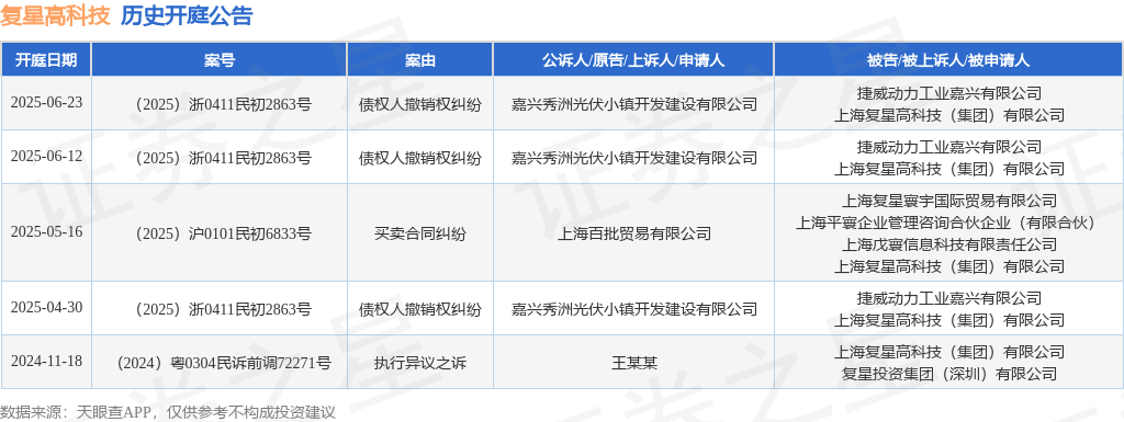 本站消息,根据天眼查APP显示,近日公布了一则上海复星高科技(集团)有限公司作为被告/被上诉人的开庭公告,详细内容如下: